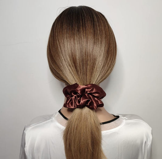 6 Pcs Satin Silk Scrunchies, Soft Hair Ties, Fashion Bands, Hair Bows, Ponytail Holders, Elastic Bracelets - Hair Accessories for Women and Girls (4.5 Inch, Yellow and Brown)