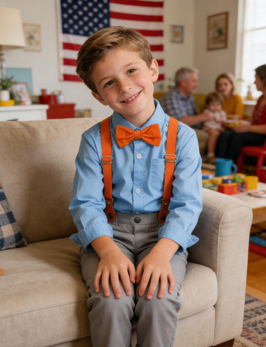 A&J DESIGN Boys Gentleman Formal Outfit Toddler Suspender Dress Suits with Orange Bow Tie 5-6 Years Blue Gray