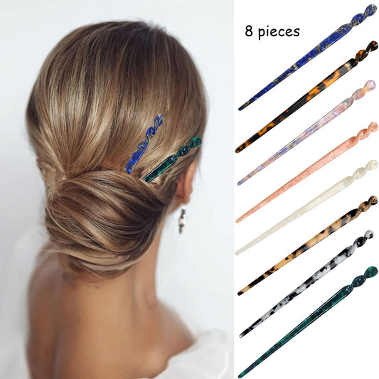 8 Pieces Acetate Hair Sticks Leopard Print Hair Pins, Tortoise Shell Hairpin Vintage Hair Chopsticks Retro Hairpins Disk, Hair Accessories for Women Girls