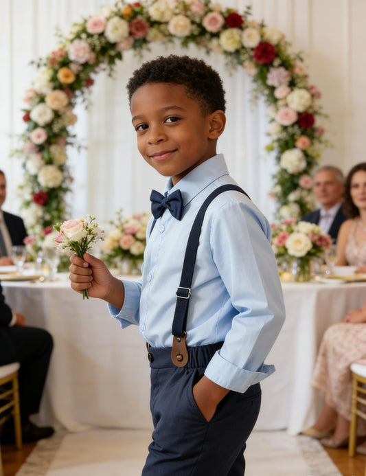 A&J DESIGN Toddler Boy Easter Outfit Baby Wedding Formal Dress Suspenders Suit Blue Navy 2-3T
