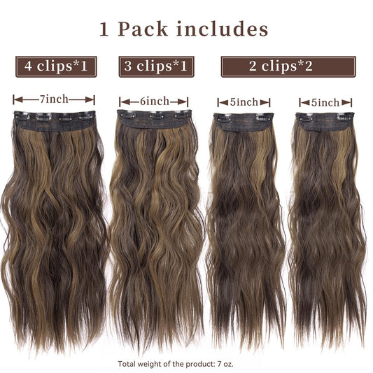 4PCS Clip in Hair Extensions for Women Brown Highlighted Caramel Blonde Long Wavy Thick Hair Extensions Clip in Double Weft Hair Extension for Daliy Use (4pcs, 20Inch, H2/426#)