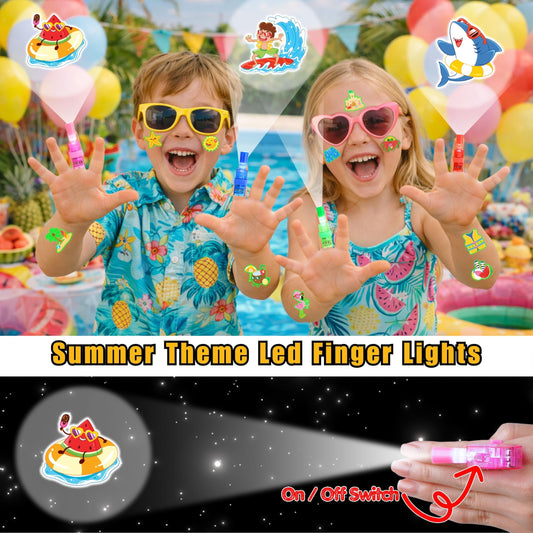 72 PCS Summer Party Favors – 48 PCS Luminous Tattoos & 24 PCS LED Finger Lights Combo – Birthday Goodie Bag Fillers, Party Supplies, Gifts Light Up Toys Glow In The Dark for Boys and Girls